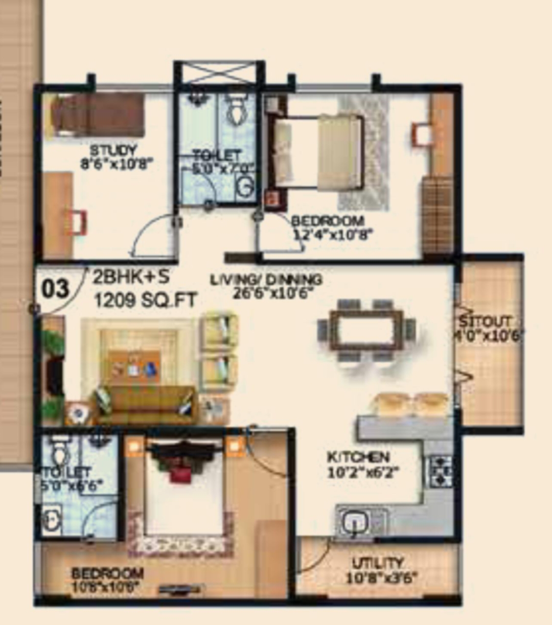 • Property Size: 1209 sqft