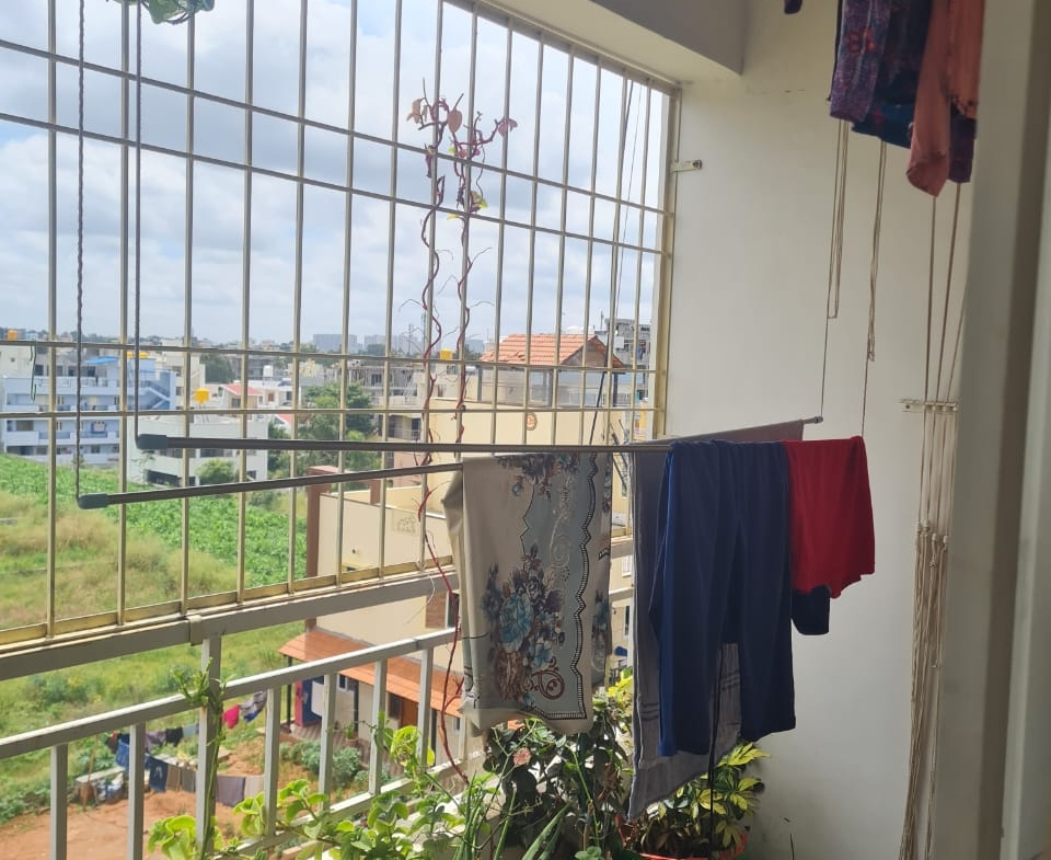 It’s a northeast corner flat available for sale having 2 covered car parking opposite to ISKON Whitefield temple .East facing puja space, equipped with safety grills for both balconies and main door entrance .A khata property .