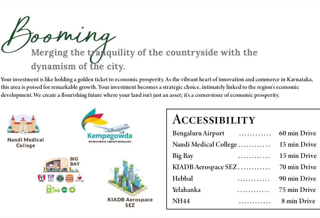 Invest in the path of progress with Hillside County, Chikkaballapur. Strategically positioned just 20 minutes from the Kempegowda International Airport, this project offers a unique opportunity to own a piece of the burgeoning North Bangalore corridor.