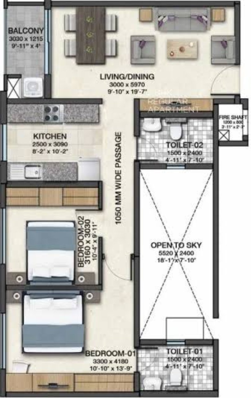 - This 2 BHK apartment is located in wing 22 in 3 rd floor out of 13 floors ,carpets area is 1012 sqft.
