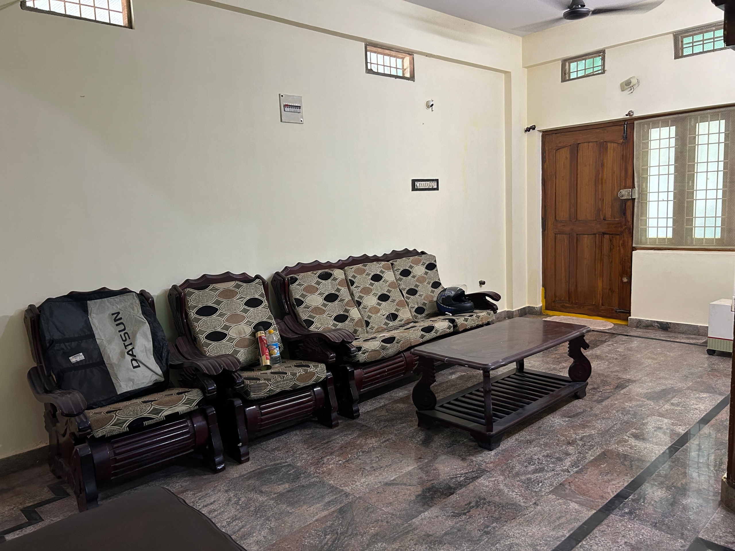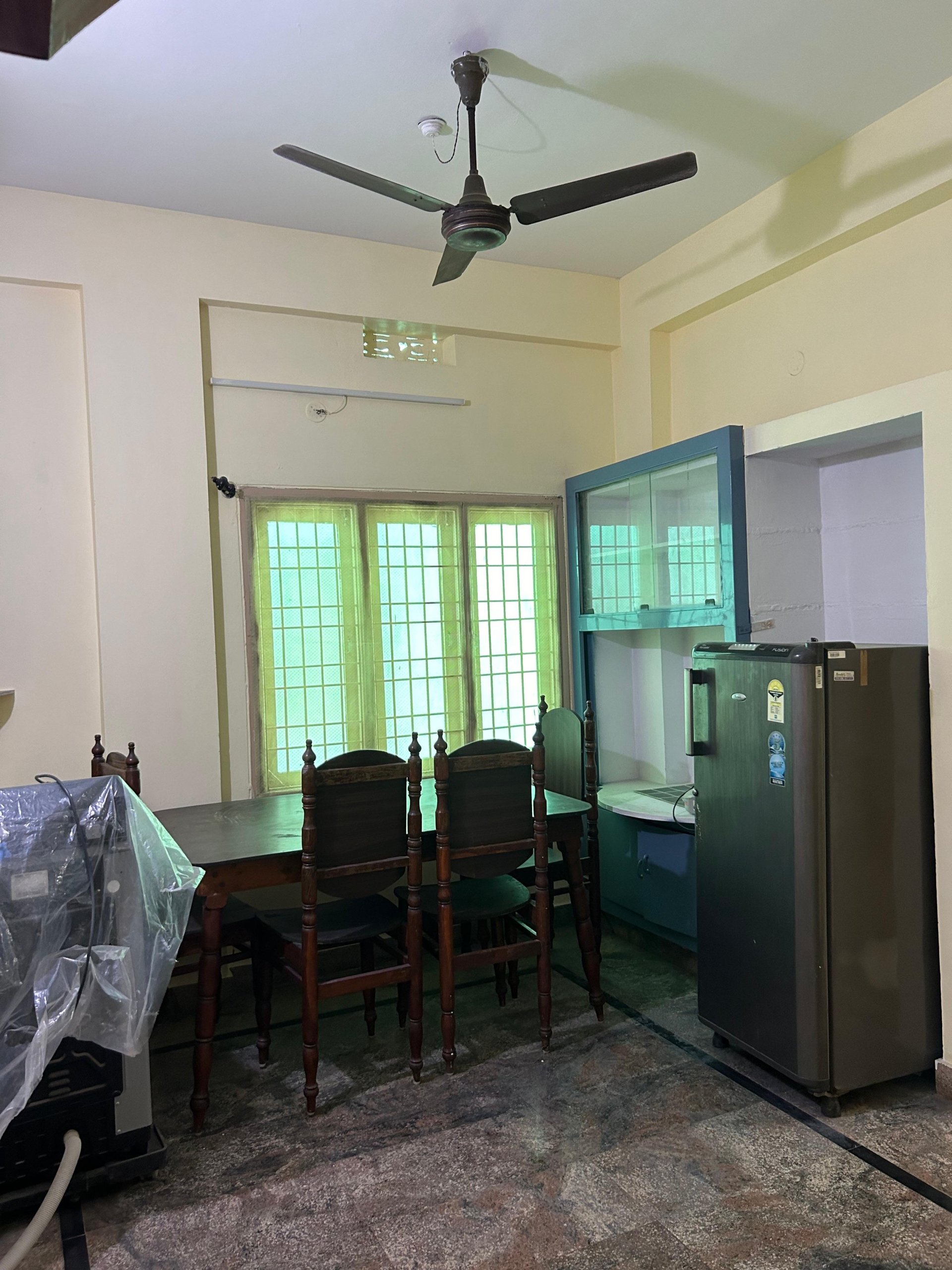 Furnish status: 3+1+1 sofa set, dining table 4 chairs, refrigerator, windows AC, washing machine, TV with Airtel DTH, Cupboards , 02 nos double beds, wardrobes, one godrej almirah ,gas stove with HP Double Bottled gas connection (will be transferred to your name if you wish to) & Inverter for power backup