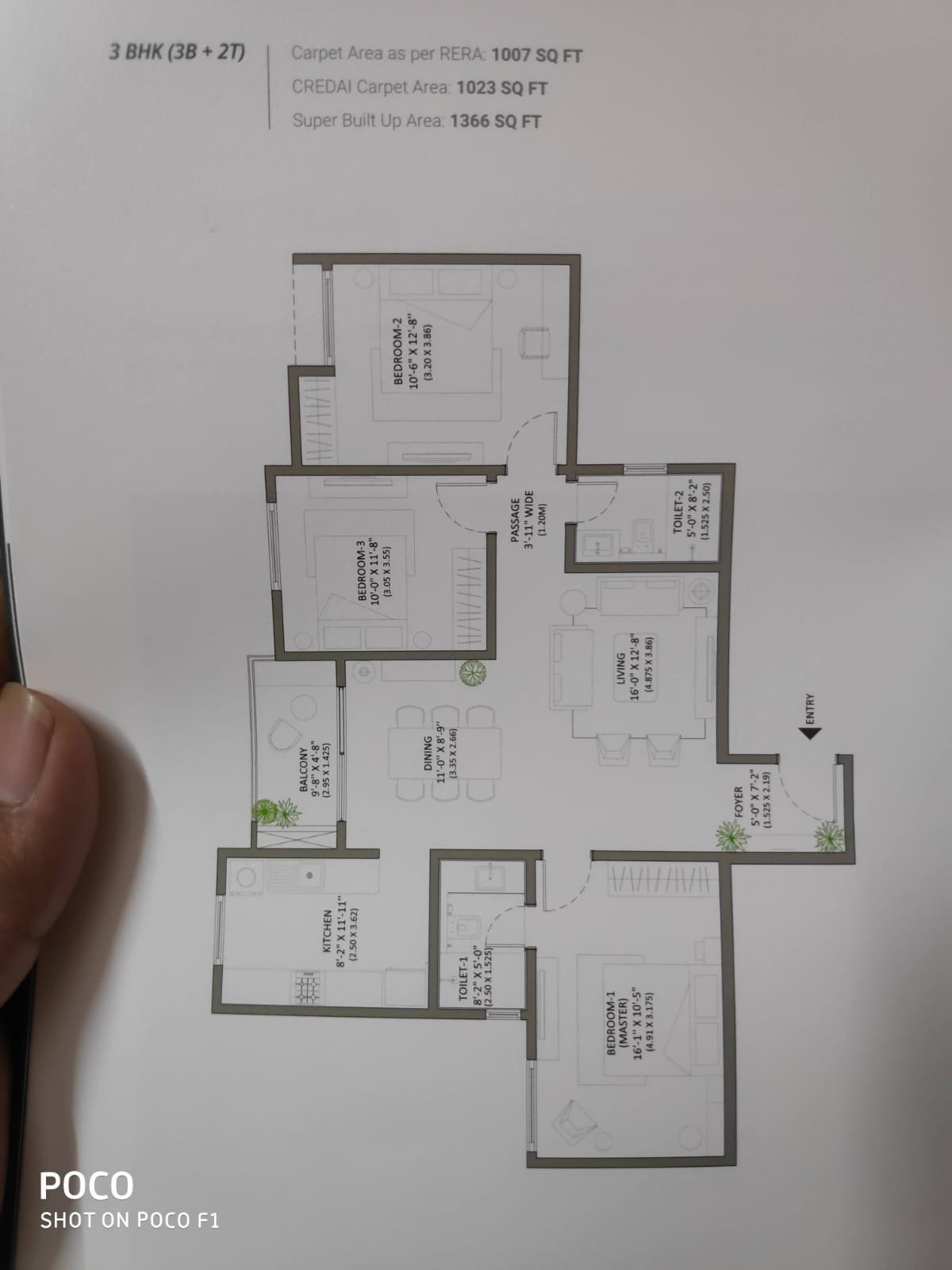 Super build up area: 1366 sq ft