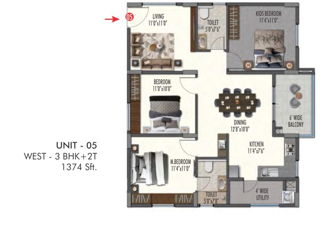 Step into a home designed for wellness and comfort. This stunning, well-ventilated apartment at Ark Oak Tree offers the perfect blend of modern architecture and natural light. Featuring an east-facing balcony that captures the refreshing morning sun, this residence is ideal for those who value a bright, airy living environment.