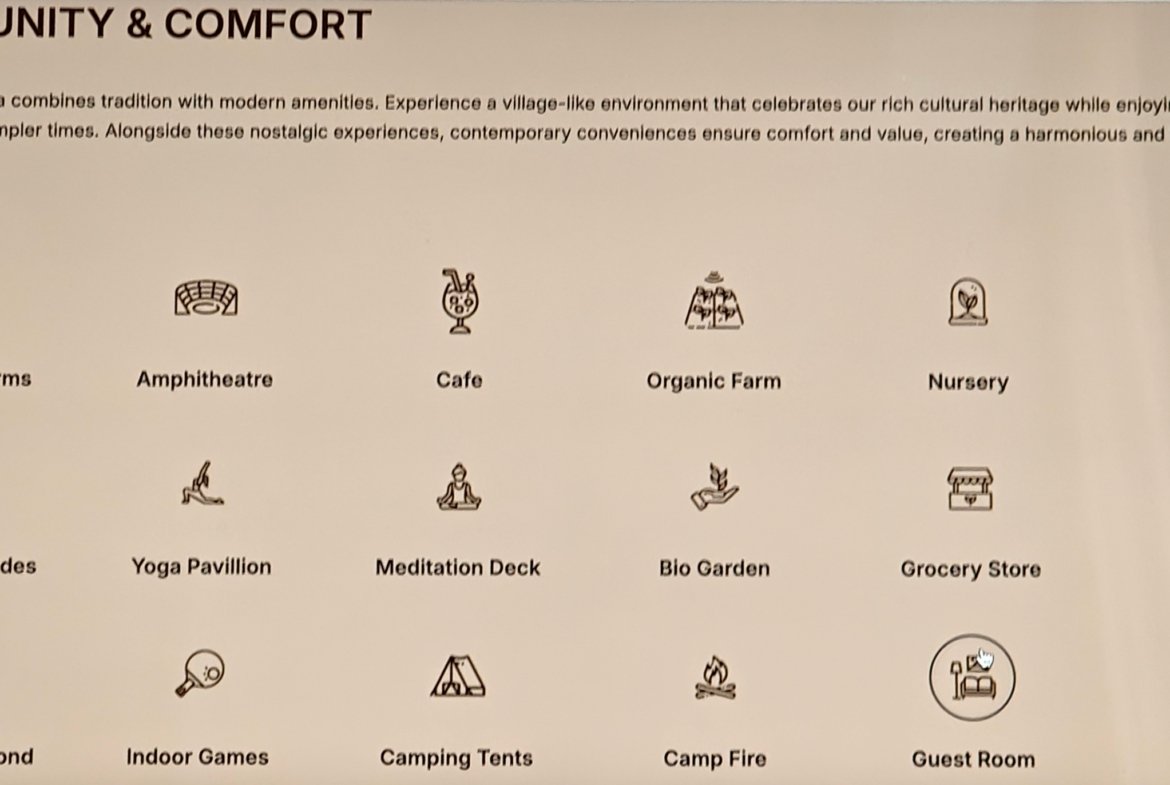 Farm-to-Table Experience: Dedicated organic farming zones, a Goshala (dairy farm), and a local grocery store for fresh produce.