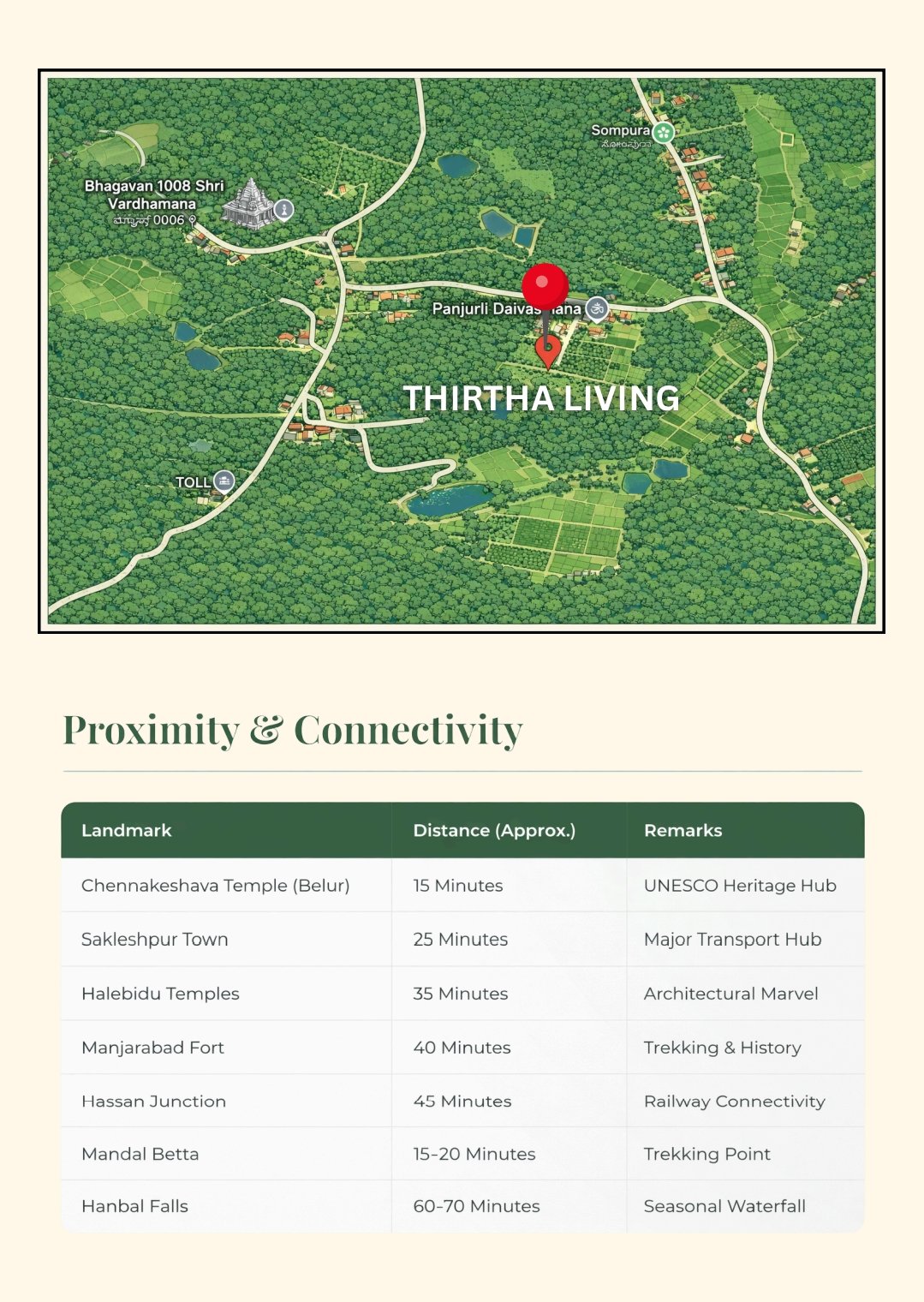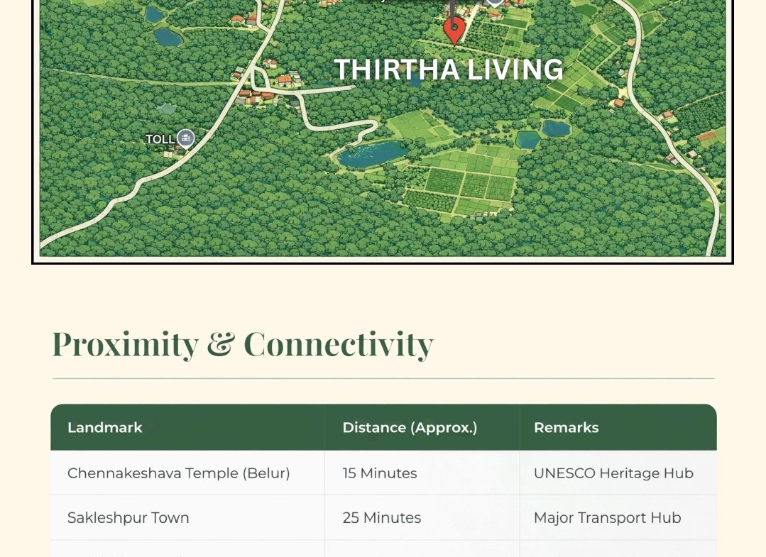 Welcome to Thirtha Living, an exclusive managed farmland community nestled in the serene foothills of the Western Ghats. Located along the prestigious Belur-Sakleshpur road, this project offers a rare opportunity to own a piece of Karnataka’s ”Green Paradise” while enjoying a completely hands-off agricultural investment.