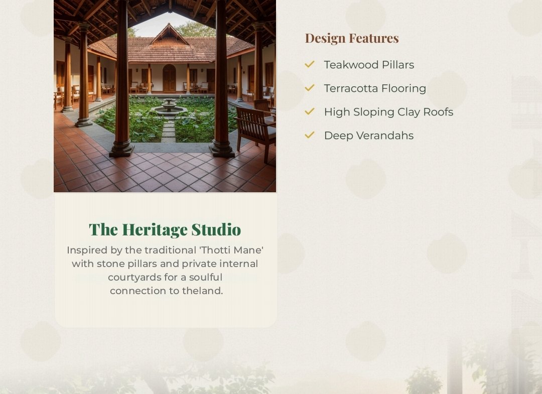 Architectural Theme: Inspired by the local heritage of Belur and the rustic charm of Malnad, the community features eco-sensitive infrastructure and traditional aesthetic touches.