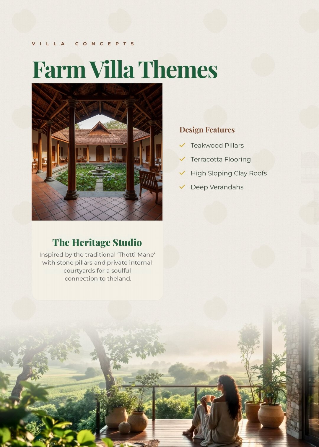 Clubhouse & Leisure: A central hub featuring a Malnad-style clubhouse, swimming pool, and yoga decks overlooking the misty valleys.